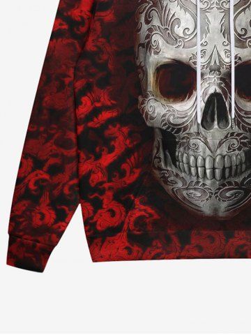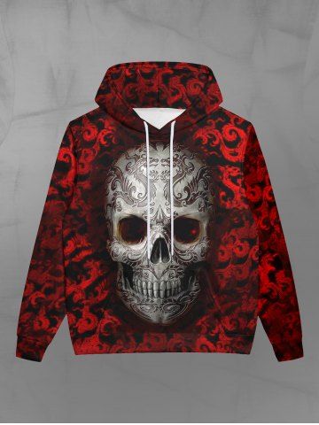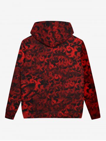 Gothic 3D Skulls Dragons Print Pocket Drawstring Ombre Halloween Fleece Lining Hoodie For Men - Red - 3xl