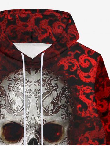 Gothic 3D Skulls Dragons Print Pocket Drawstring Ombre Halloween Fleece Lining Hoodie For Men - Red - 4xl
