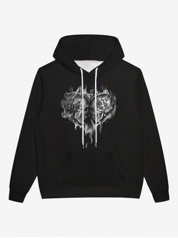 Gothic 3D Skulls Fire Flame Heart Print Pocket Drawstring Fleece Lining Halloween Pullover Hoodie For Men - Black - 4xl