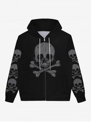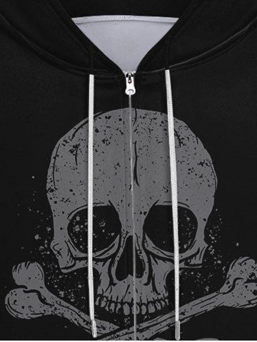 Gothic 3D Skulls Print Zipper Pockets Drawstring Hoodie For Men - Black - 5xl