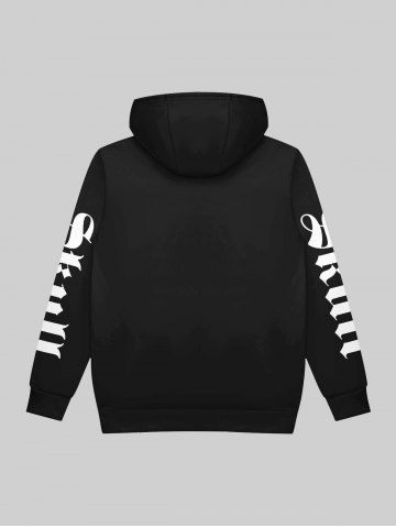 Gothic 3D Skulls Rose Flower Letters Print Pocket Drawstring Fleece Lining Pullover Hoodie For Men - Black - M