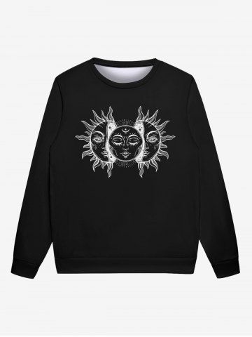 Gothic 3D Sun Face Print Crew Neck Hoodie For Men - Black - 3xl