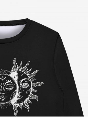 Gothic 3D Sun Face Print Crew Neck Hoodie For Men - Black - 4xl