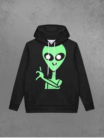 Outerwear > Gothic Alien Print Pocket Drawstring Fleece Lining Pullover Hoodie For Men