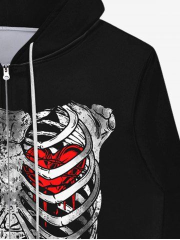 Gothic Bloody Heart Skeleton Print Valentines Zipper Pocket Drawstring Fleece Lining Hoodie For Men - Black - 5xl