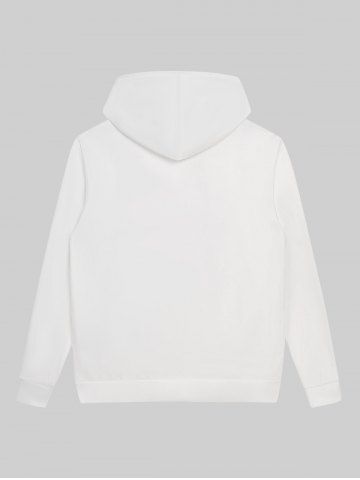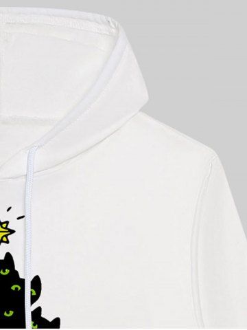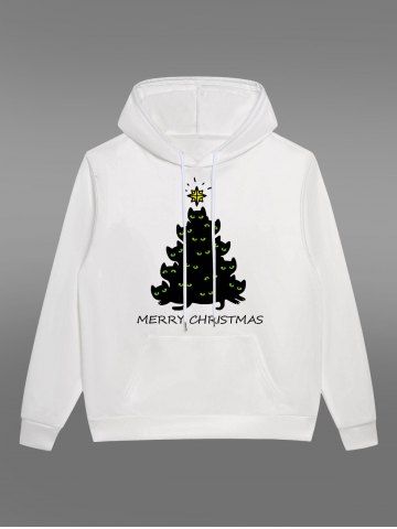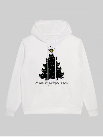 Gothic Cat Christmas Tree Stars Letters Print Pocket Drawstring Fleece Lining Pullover Hoodie For Men - White - L
