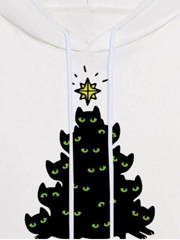 Gothic Cat Christmas Tree Stars Letters Print Pocket Drawstring Fleece Lining Pullover Hoodie For Men - White - 4xl