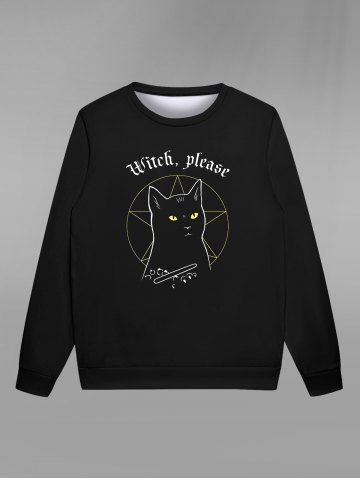 Gothic Cat Pentagram Letters Print Sweatshirt For Men - Black - 2xl