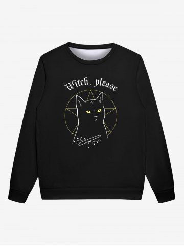 Gothic Cat Pentagram Letters Print Sweatshirt For Men - Black - 5xl