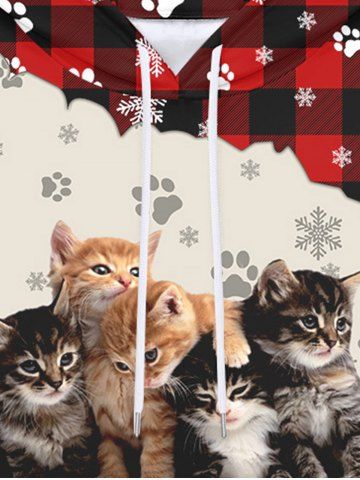 Gothic Christmas Cat Claw Snowflake Plaid Checkered Colorblock Print Fleece Lining Drawstring Hoodie For Men - Multi-a - 4xl