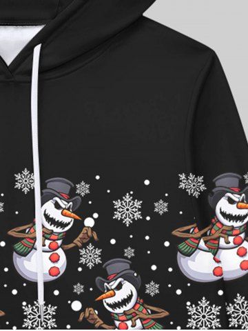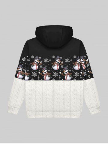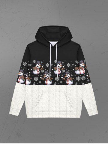 Gothic Christmas Colorblock Snowman Sowflake Cable Knit 3D Print Pockets Drawstring Hoodie For Men - Black - M