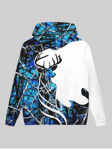 Gothic Christmas Elk Branch Colorblock Letters Print Pocket Fleece Lining Pullover Hoodie For Men - White - 5xl