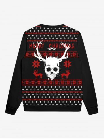 Gothic Christmas Elk Skull Letters Print Sweatshirt For Men - Black - Xl