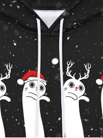 Gothic Christmas Elk Snowman Snowflake Colorblock Print Fleece Lining Pockets Drawstring Hoodie For Men - Black - 3xl