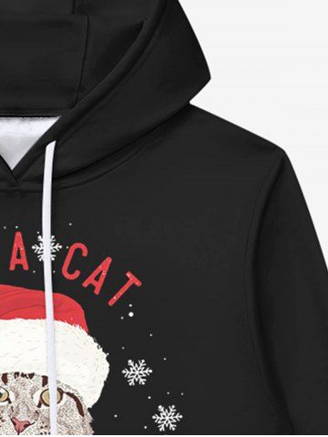 Gothic Christmas Hat Cat Letters Snowflake Print Fleece Lining Drawstring Hoodie For Men - Black - 5xl