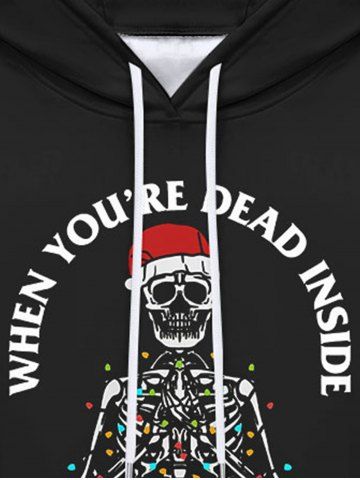 Gothic Christmas Hat Skeleton Skull Print Fleece Lining Drawstring Hoodie For Men - Black - M