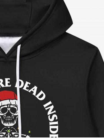 Gothic Christmas Hat Skeleton Skull Print Fleece Lining Drawstring Hoodie For Men - Black - L