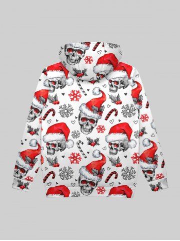 Gothic Christmas Hat Skull Candy Snowflake Heart Print Fleece Lining Drawstring Hoodie For Men - White - M