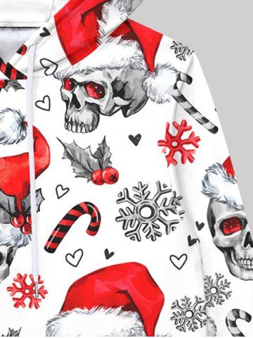 Gothic Christmas Hat Skull Candy Snowflake Heart Print Fleece Lining Drawstring Hoodie For Men - White - 5xl