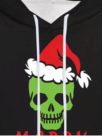 Gothic Christmas Hat Skull Plaid Letters Print Pocket Drawstring Fleece Lining Hoodie For Men - Black - 5xl