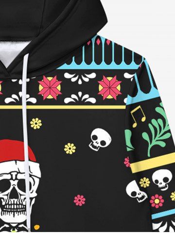 Gothic Christmas Hat Skull Skeleton Snowflake Striped Print Pocket Drawstring Fleece Lining Pullover Hoodie For Men - Black - M
