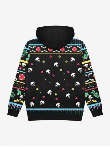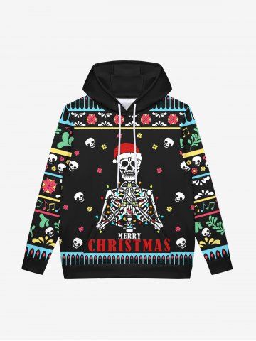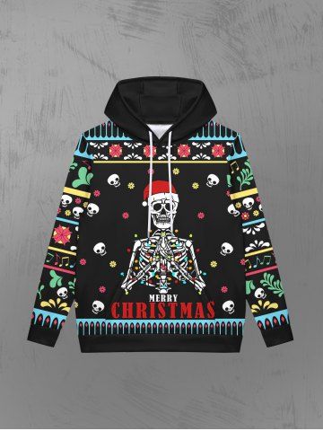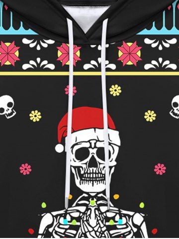 Gothic Christmas Hat Skull Skeleton Snowflake Striped Print Pocket Drawstring Fleece Lining Pullover Hoodie For Men - Black - 2xl
