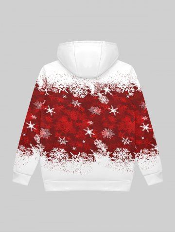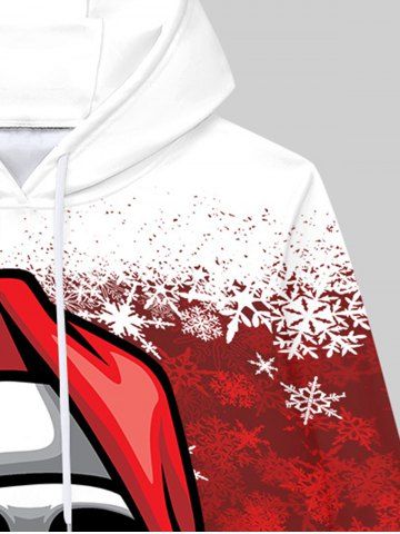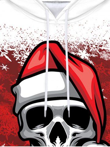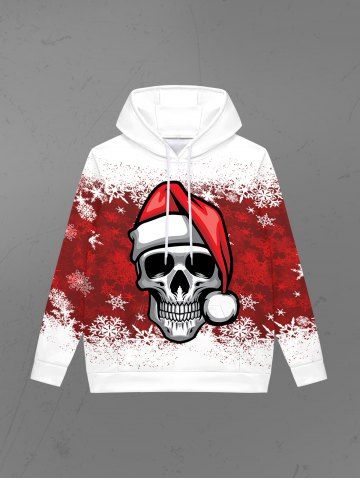 Gothic Christmas Hat Skull Snowflake Colorblock Print Fleece Lining Drawstring Hoodie For Men - Red - Xl