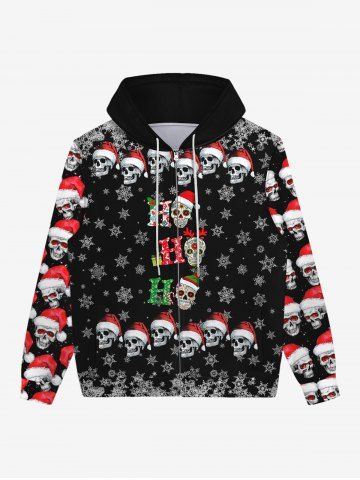 Gothic Christmas Hat Skull Snowflake Print Zipper Fleece Lined Hoodie For Men - Black - 6xl