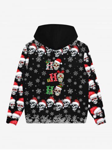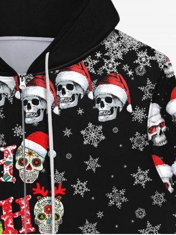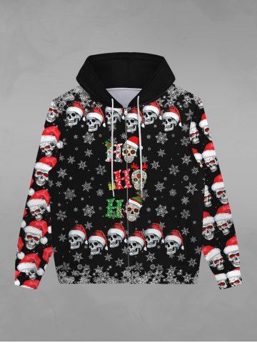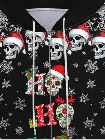 Gothic Christmas Hat Skull Snowflake Print Zipper Fleece Lined Hoodie For Men - Black - 8xl