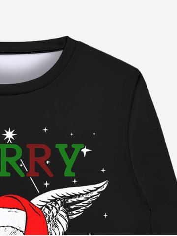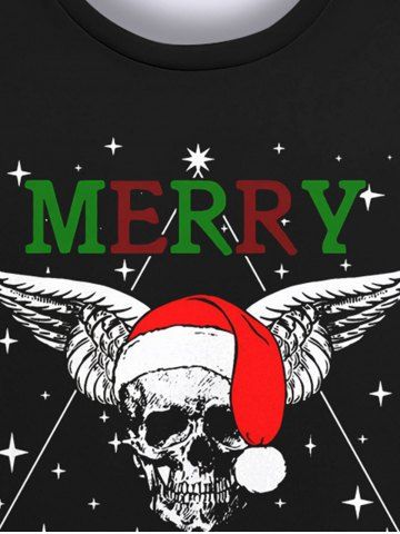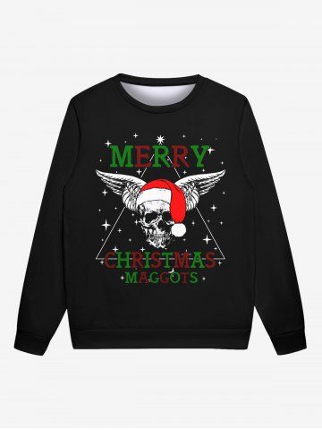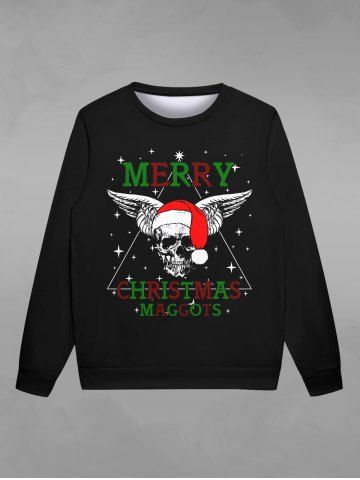 Gothic Christmas Hat Skull Stars Letters Triangle Printed Pullover Long Sleeves Sweatshirt For Men - Black - 2xl