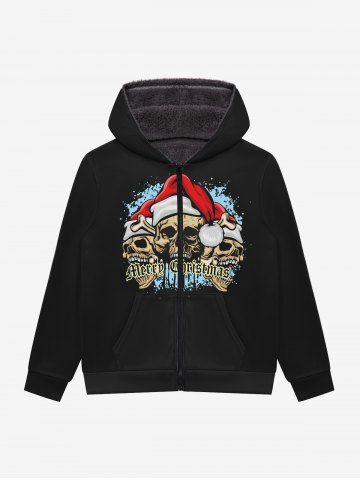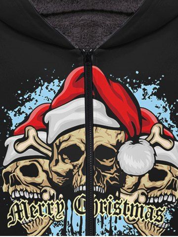 Gothic Christmas Hat Skulls Paint Splatter Print Zip Up Pockets Fleece Lining Drawstring Hoodie For Men - Black - 5xl