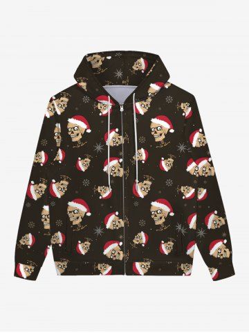 Outerwear > Gothic Christmas Hat Skulls Snowflake Print Zipper Pocket Drawstring Hoodie For Men