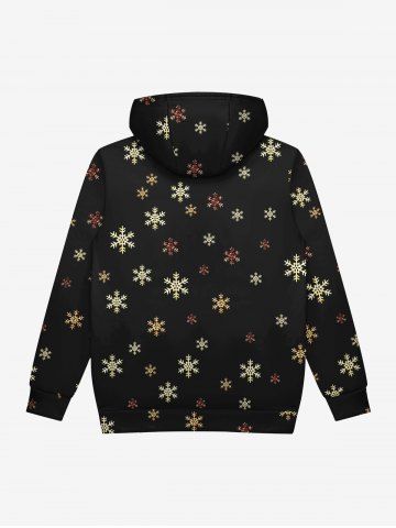 Gothic Christmas Hat Snowflake Elk Print Pocket Drawstring Pullover Fleece Lining Long Sleeves Hoodie For Men - Black - 2xl