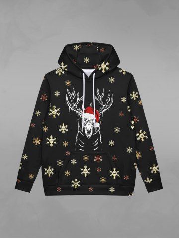 Gothic Christmas Hat Snowflake Elk Print Pocket Drawstring Pullover Fleece Lining Long Sleeves Hoodie For Men - Black - 5xl