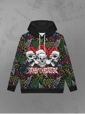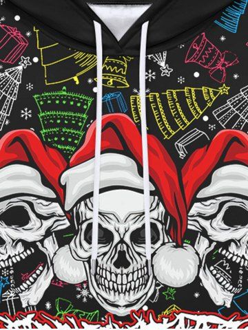 Gothic Christmas Hat Tree Bells Skulls Print Fleece Lining Drawstring Hoodie For Men - Black - 2xl