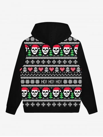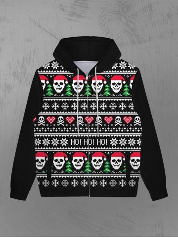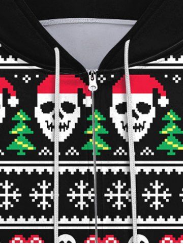 Gothic Christmas Hat Tree Skulls Heart Striped Snowflake Print Zipper Pocket Drawstring Hoodie For Men - Black - 4xl