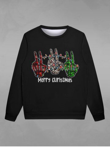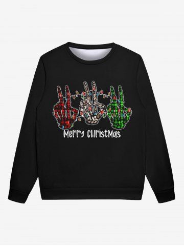 Gothic Christmas Light Skeleton Claws Letters Print Sweatshirt For Men - Black - 3xl