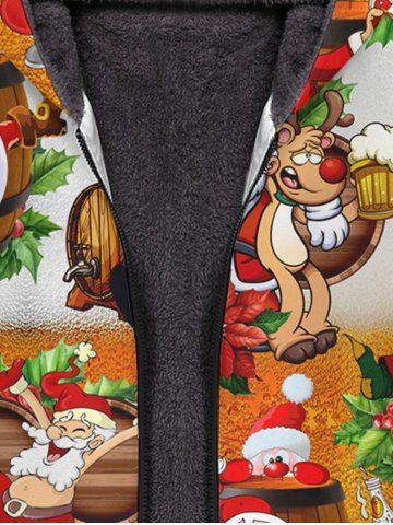 Gothic Christmas Santa Claus Beer Barrel Print Zipper Fleece Lining Hoodie For Men - Multi-a - 6xl