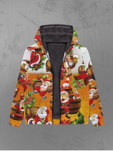 Outerwear > Gothic Christmas Santa Claus Beer Barrel Print Zipper Fleece Lining Hoodie For Men