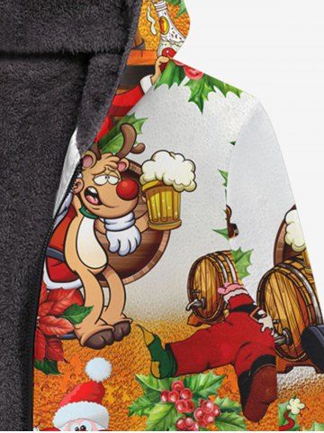 Gothic Christmas Santa Claus Beer Barrel Print Zipper Fleece Lining Hoodie For Men - Multi-a - 7xl