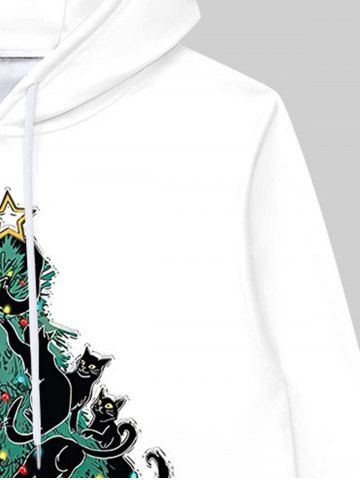Gothic Christmas Tree Cats Star Light Print Pockets Fleece Lining Drawstring Hoodie For Men - White - 2xl
