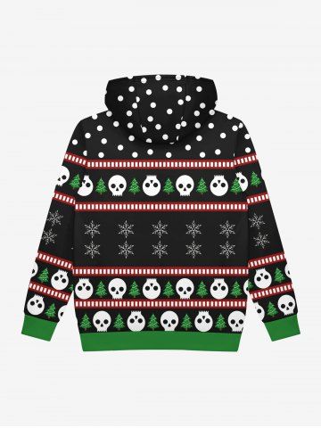 Gothic Christmas Tree Hat Skull Candy Polka Dot Print Fleece Lining Drawstring Hoodie For Men - Black - M