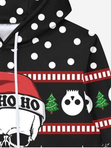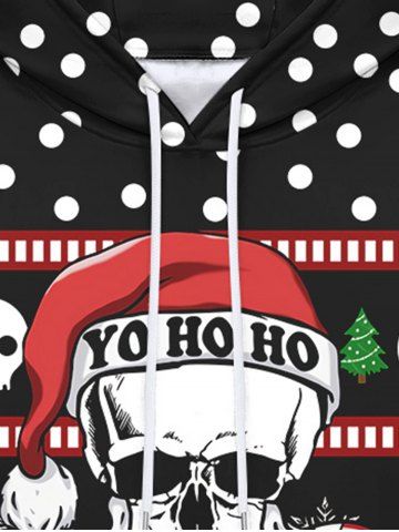 Gothic Christmas Tree Hat Skull Candy Polka Dot Print Fleece Lining Drawstring Hoodie For Men - Black - 5xl