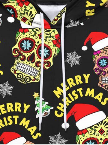 Gothic Christmas Tree Hat Skulls Snowflake Print Drawsting Fleece Lining Hoodie For Men - Black - Xl