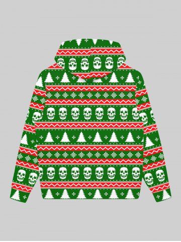 Gothic Christmas Tree Snowflake Skulls Striped Print Zipper Pocket Drawstring Hoodie For Men - Green - 4xl
