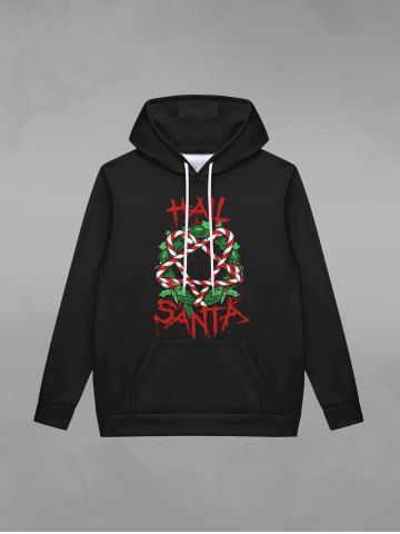 Gothic Christmas Wreath Candy Pentagram Print Fleece Lining Drawstring Hoodie For Men - Black - Xl