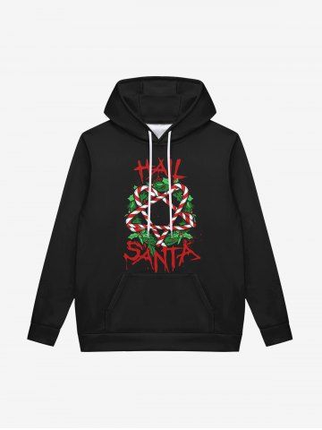 Outerwear > Gothic Christmas Wreath Candy Pentagram Print Fleece Lining Drawstring Hoodie For Men