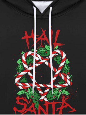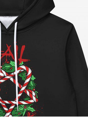 Gothic Christmas Wreath Candy Pentagram Print Fleece Lining Drawstring Hoodie For Men - Black - 4xl