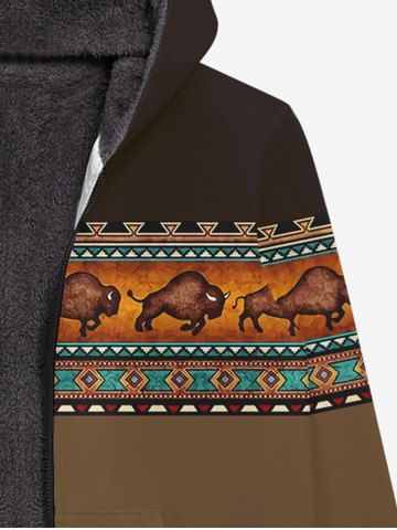 Outerwear > Gothic Colorblock Ethnic Graphic Bull Print Zipper Fleece Hoodie For Men