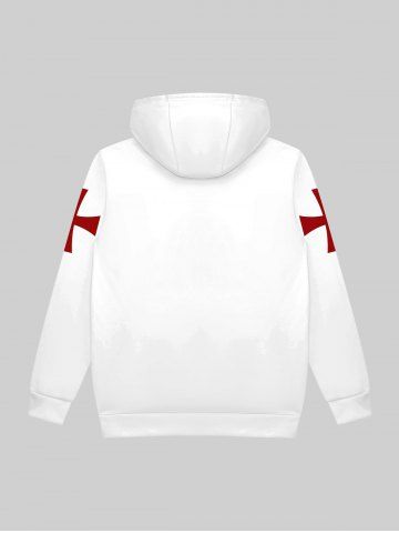 Gothic Cross Rose Flower Leaf Print Pockets Fleece Lining Drawstring Hoodie For Men - White - 2xl